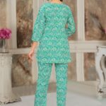 Make a statement with this turquoise co-ord set, a blend of comfort and sophistication. The eye-catching floral prints and tailored silhouette make it a versatile addition to your wardrobe.