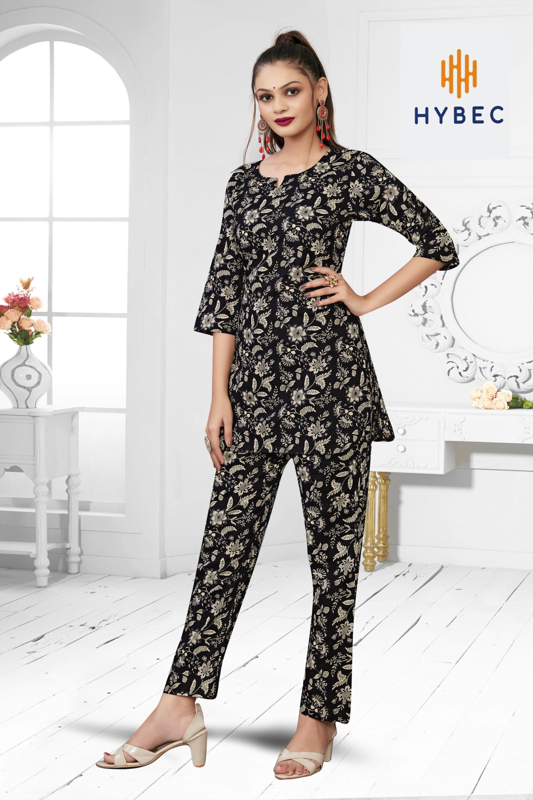 - Hybec Women’s Cotton Floral Printed Co-Ord set (Black), Which is made from pure cotton fabric.